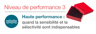Quand l’utiliser | Produits à coût optimisé, adaptés à tous les types d’instruments HPLC / UHPLC et GC, et dont les capacités ont été testées dans le cadre d’analyses quotidiennes | Produits à cadence élevée pour des données GC et HPLC / UHPLC de haute qualité garantissant un flux de travail ininterrompu | Ils sont généralement conditionnés dans des salles blanches afin de les protéger contre les facteurs environnementaux, de réduire les effets d'adsorption des composés faibles à l'état de traces et de contenir les plus faibles quantités/niveaux de métaux, de matières extractibles et de matières lixiviables, ce qui vous permet d'obtenir la sensibilité et la sélectivité de vos analytes les plus difficiles en toute confiance et de manière constante. |